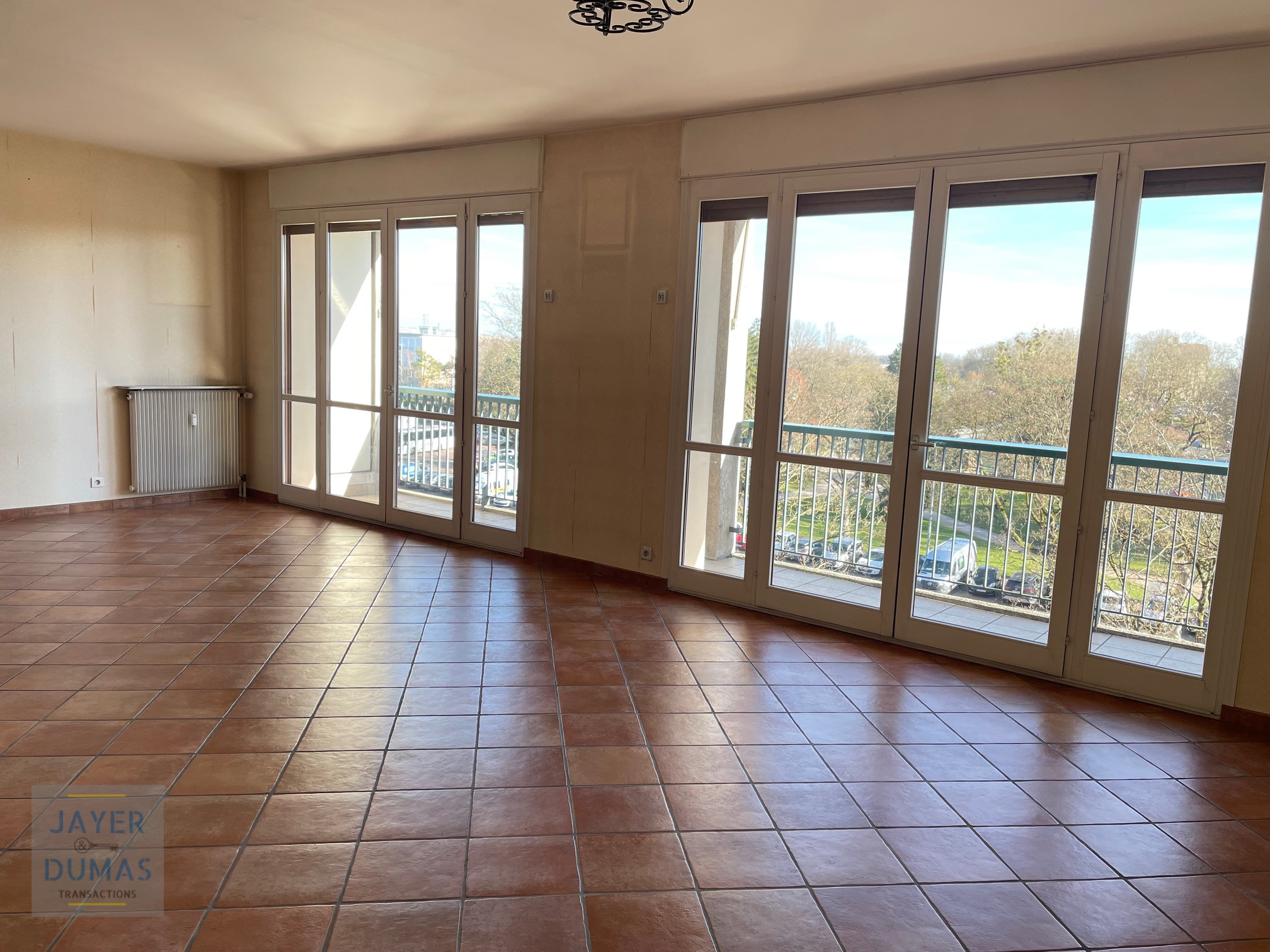 CHALON-SUR-SAONE - CENTRE VILLE - Votre Agence JAYER & DUMAS Transactions vous propose ce bel appartement T5, situé au 4ème étage d'une résidence sécurisée avec ascenseur, d'une superficie habitable de 123,08 m² loi Carrez, comprenant : hall d'entrée, cuisine équipée, vaste séjour-salon (40m²) donnant accès à une loggia, 3 grandes chambres dont une avec lavabo, salle d'eau, WC, couloir et placards -